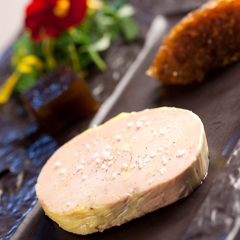 Foie gras de canard d'Alsace, gelée de pot au feu au Pinot gris